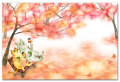 水彩イラストポストカード 「もみじがり」