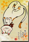 レトロな猫の絵葉書 笑う門には福いっぱい