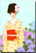 イラストレーター立花小春の世界 大正モダンガールズ・・・・・・・美しき女性を描く・・・・・・・ 和道楽オリジナルポストカード(イラストレーター立花小春) 大正モダンガールズ「あじさい」 サイズ・100×148ミリ 紙材質・モデラトーン 優しい風合いです。