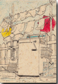 ペン画ポストカード  「洗濯の青春」