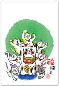 和風イラスト・たのしい絵葉書 『開運・招き猫』 ポストカード