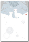 やさしいポストカード 「冬のオコジョ」 冬のイラスト 絵葉書 寒中見舞い
