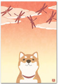 秋のイラスト・ポストカード 「あかとんぼ」 犬の絵葉書