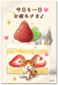 笑顔を届けるイラストレーション・猫作家Meg・ポストカード 「おめでとうケーキ」