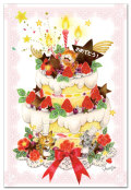 笑顔を届けるイラストレーション・猫作家Meg・ポストカード 「おめでとうケーキ」