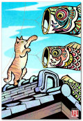 和風イラスト・おしゃれな絵葉書 『鯉のぼりをねらう』 ぼん蔵ポストカード
