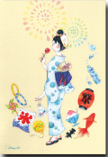 水彩イラスト「夏祭り」 サイズ・100×148ミリ 紙材質・モデラトーン 優しい風合いです。