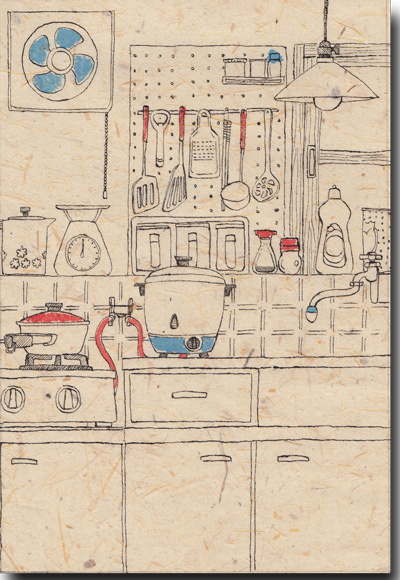 ペン画ポストカード 「キッチンの青春」