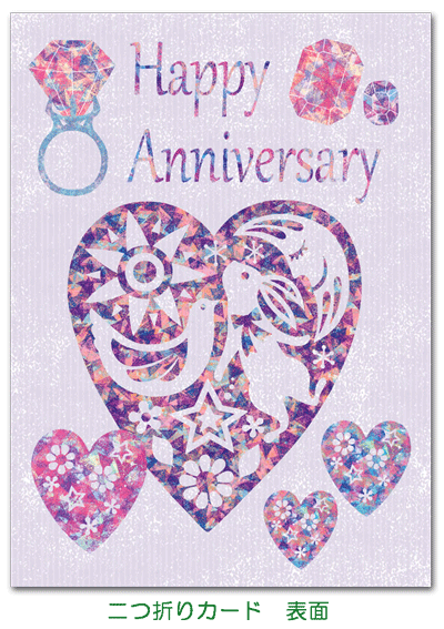 大切な人に贈るグリーティングカード 「ハッピーアニバーサリー」 二つ折り中紙 封筒 3点セット